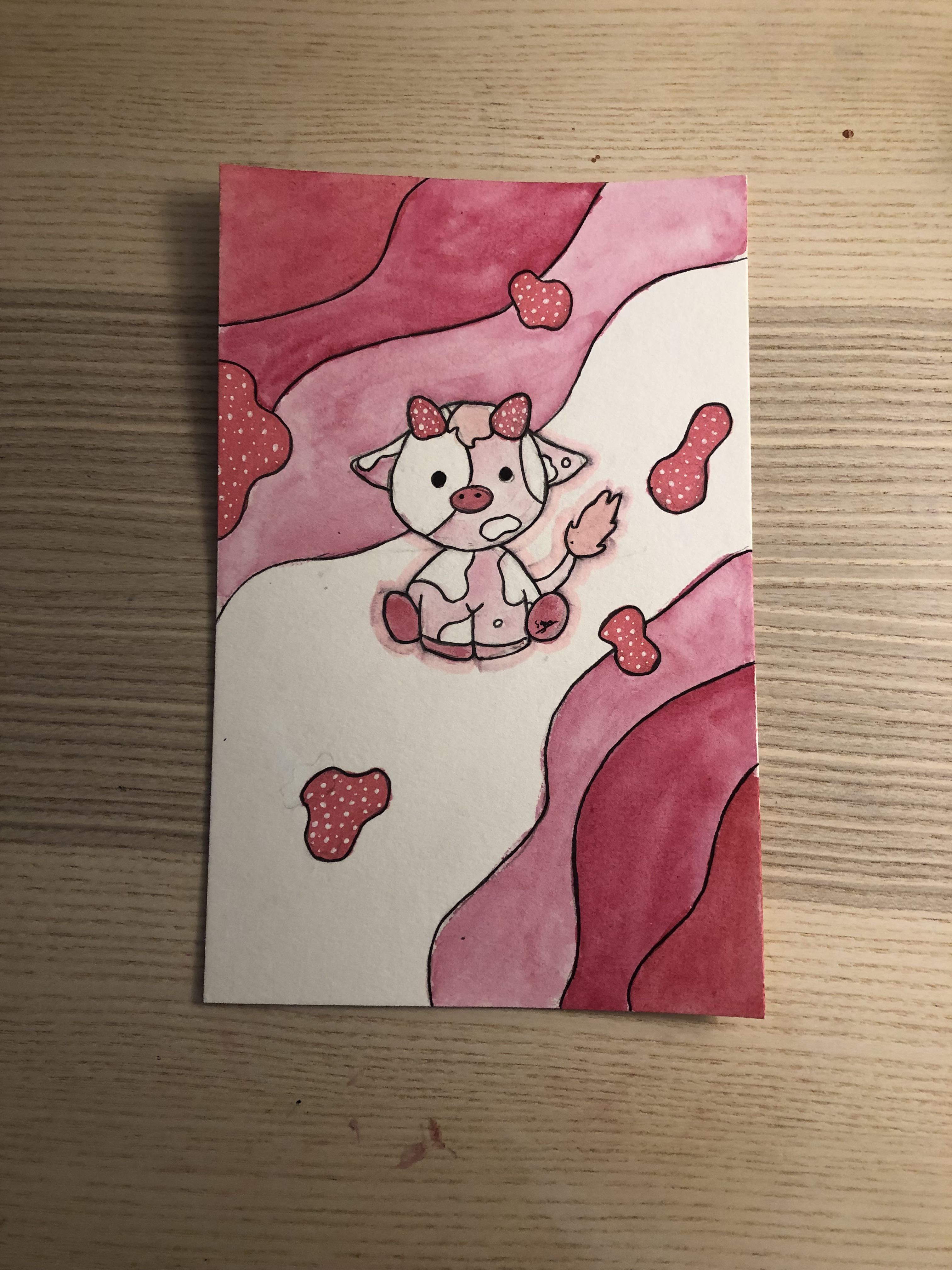 strawberry cow painting - Strawberry Cow Drawing Watercolor